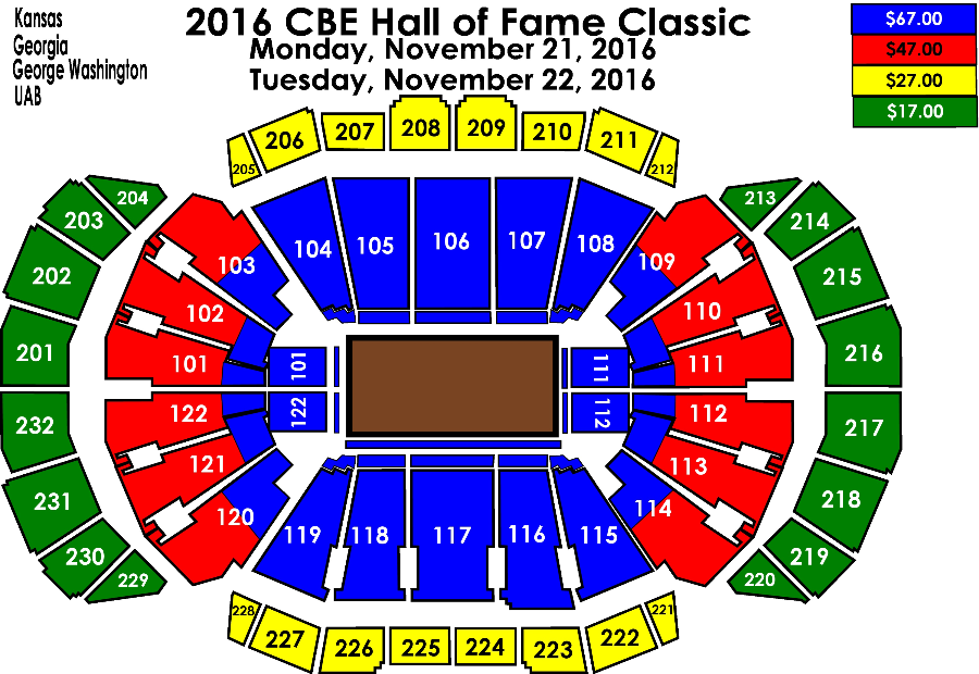 Three-time NCAA champion Kansas will join Georgia, 2016 NIT Champion George Washington and UAB for the championship rounds of the 2016 CBE Hall of Fame Classic November 21 and 22 at T-Mobile Center.